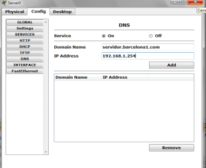 Como vemos en la imagen se usa la misma direccion ip del servidor y se le da su nombre de dominio, recuerde dar click en add, puede agregar mas dominios si hay mas servidores en su red.