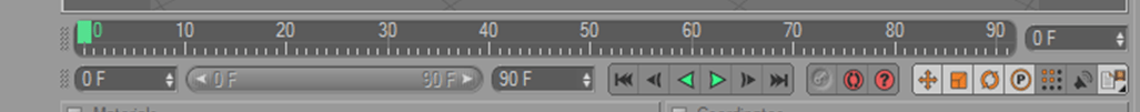 por debajo del area de trabajo nos encontramos con una linea de tiempo similar a la de flash solo que por defecto esta esta limitada a 90 cuadros, cosa que se puede cambiar, podemos ver en verde los tipicos botones para controlar la reproduccion, en rojo los botones para insertar el keyframe e iniciar grabacion.