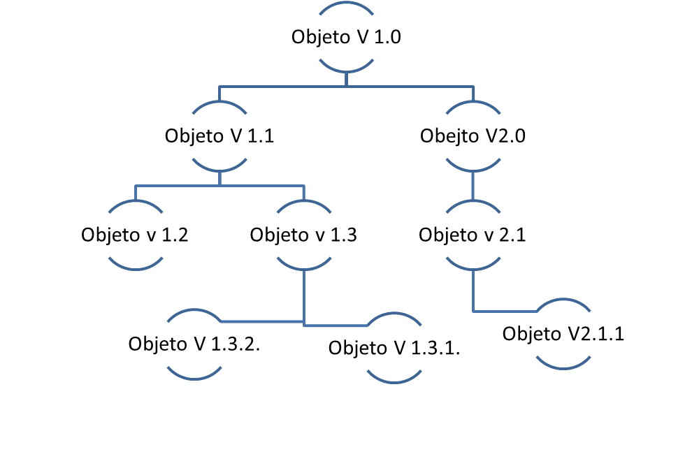 Otra forma de controlar las modificaciones es la creación de un grafo de versiones, en el cual se mustran las distintas versiones de los objetos y a partir de que version se hizo la modificación.