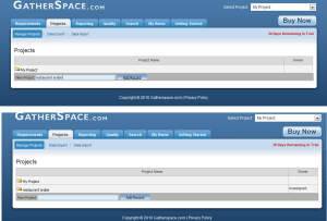 Una vez dentro de gatherspace ahora debemos crear un proyecto asi que iremos a la pestaña «projects» introduciremos el nombre del proyecto y presionaremos el boton «add record»