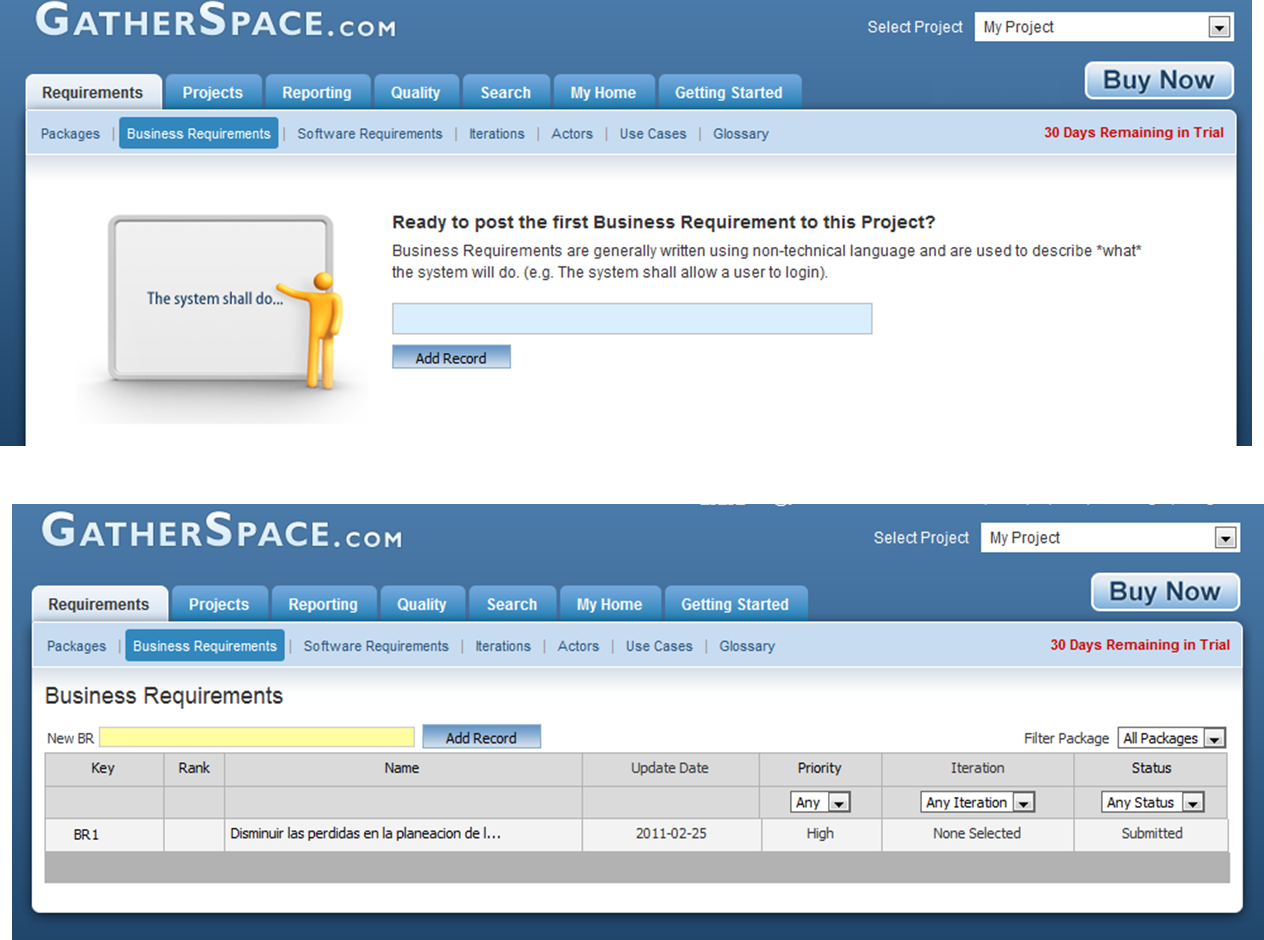 Una vez que completemos los requerimientos del negocio, pasaremos a los requerimientos de software.