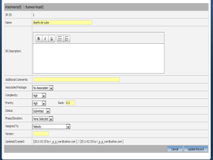 El procedimiento es similar al anterior, introducimos el nombre del requerimiento y hacemos click en «add record»