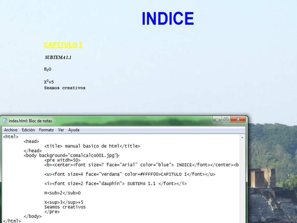 En el post anterior «html continuacion» terminamos de ver como manejar textos y darles formato, ahora en este post comenzaremos a trabajar con otros elementos.