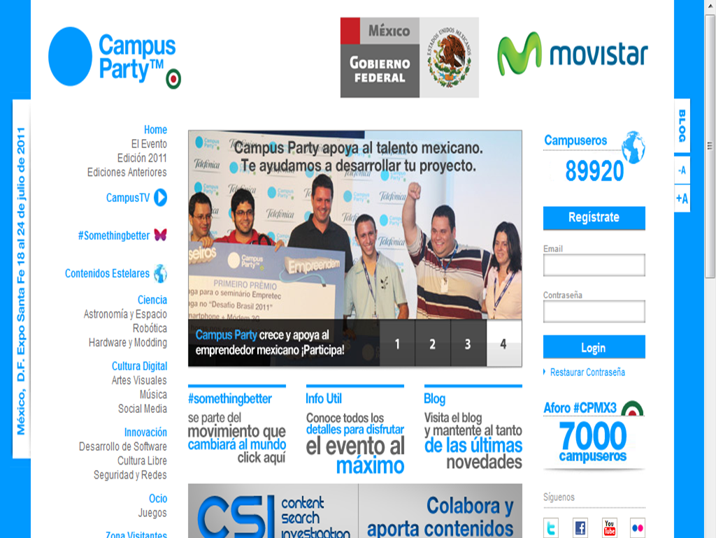 Para más información visite la página del campus party http://www.campus-party.com.mx/2011/index.html