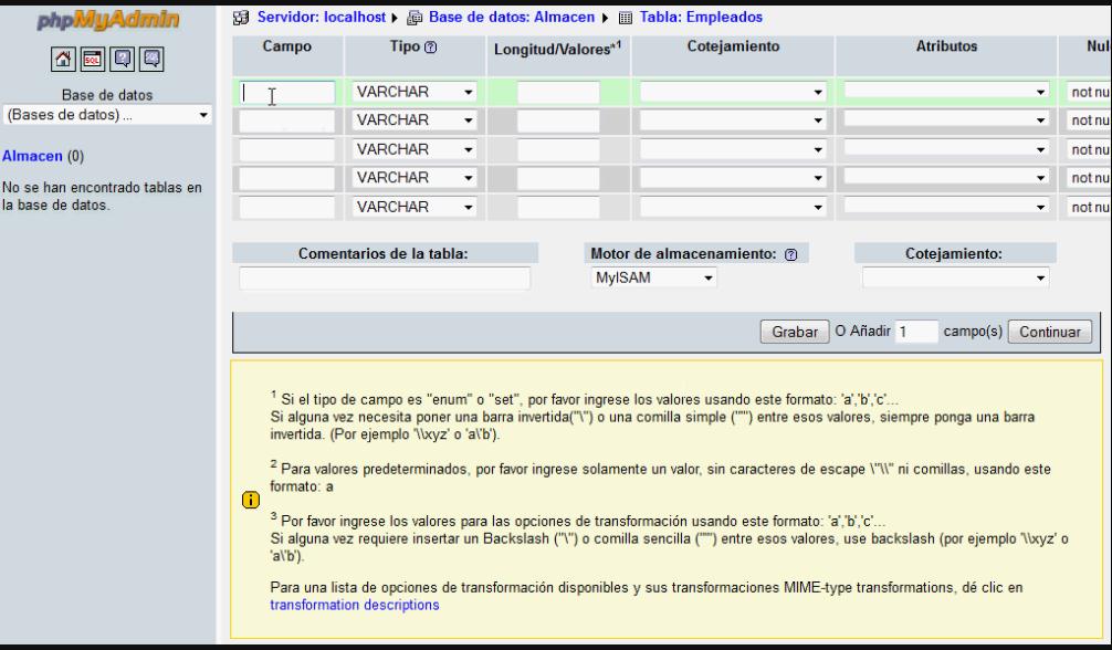 Cada linea es un campo de nuestra tabla y se nos piden varios datos, pero los mas importantes son: