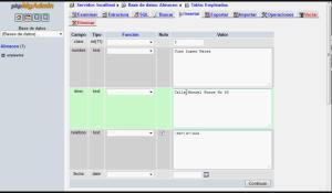 Si deseamos agregar algunos registros de forma manual para hacer pruebas debemos ir la pestaña nombrada insertar