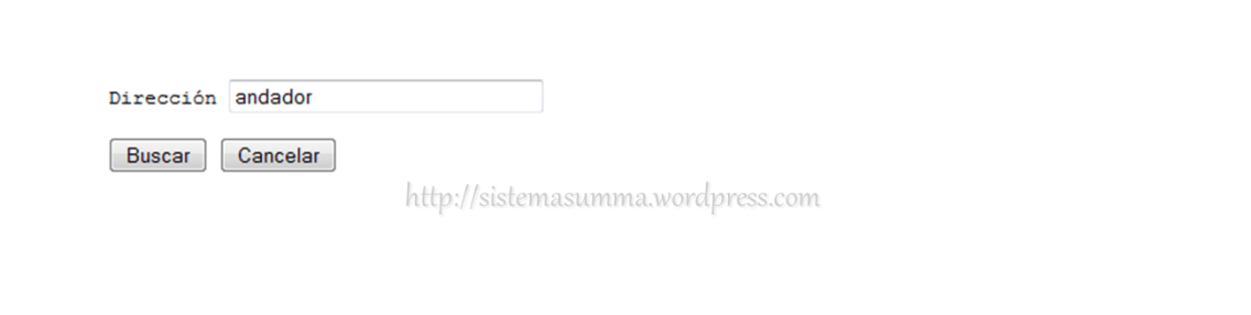 Como vemos es un html muy simple que manda la dirección introducida a un php llamado lista.php, ahora bien la pagina se vería de la siguiente forma: