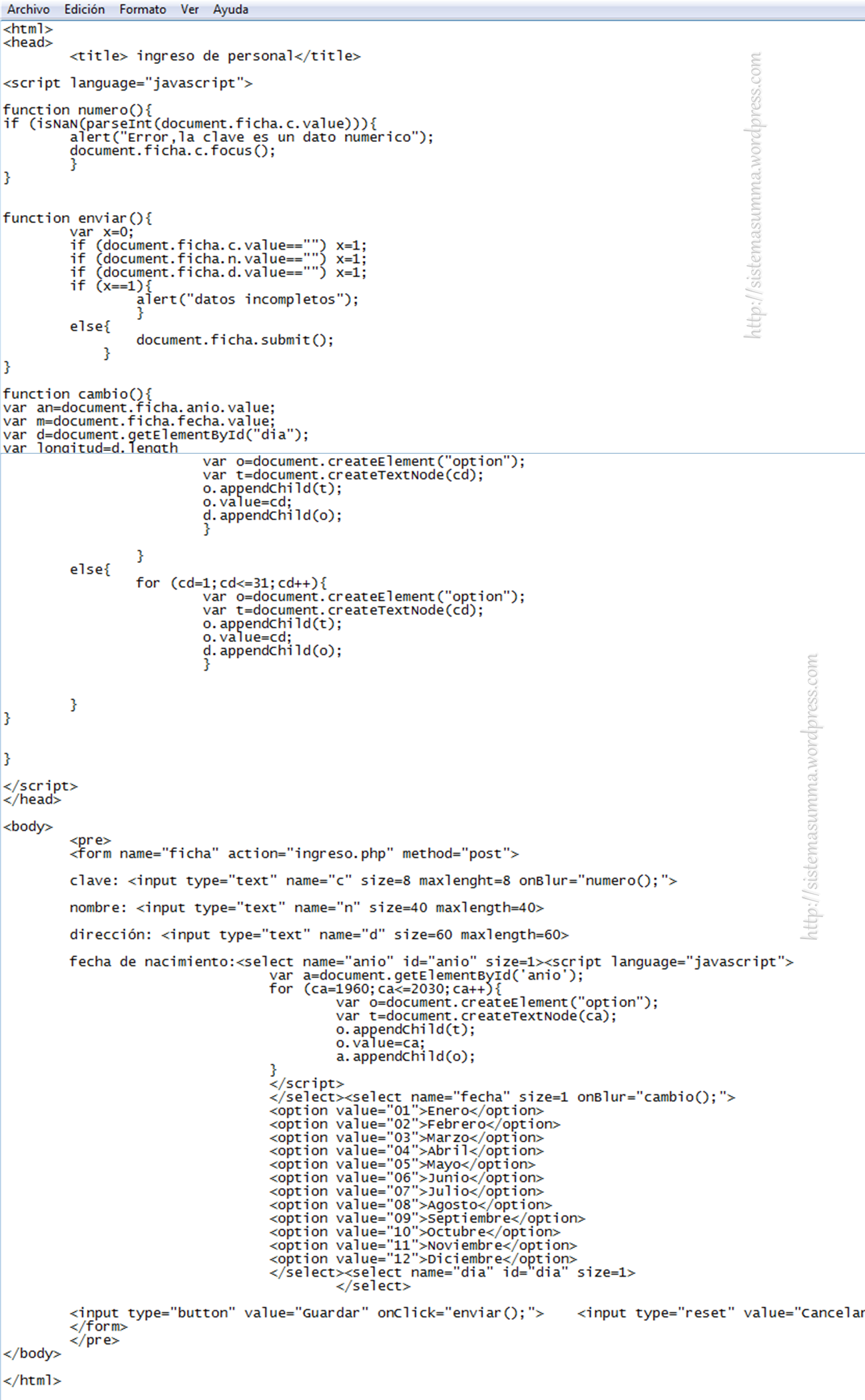 Como vemos de este no hay mucho que comentar, lo único que podríamos agregar sería un javascript que validara el formato numérico de la clave.