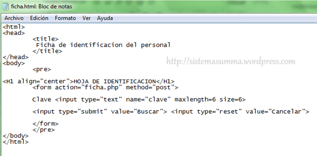 Una vez hecho esto, comenzaremos con el primer ejemplo, en esta ocasión elaboraremos una hoja de identificación de personal, así que lo primero que necesitamos es una página web que nos solicite la clave del empleado.