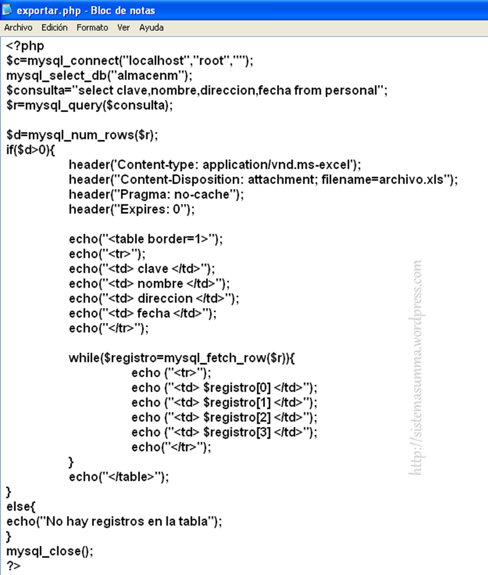 - El segundo header le indica que la información sera adjuntada o almacenada en un archivo llamado «archivo.xls» igual le puede poner cualquier nombre, y es con este nombre que se guardara la información.