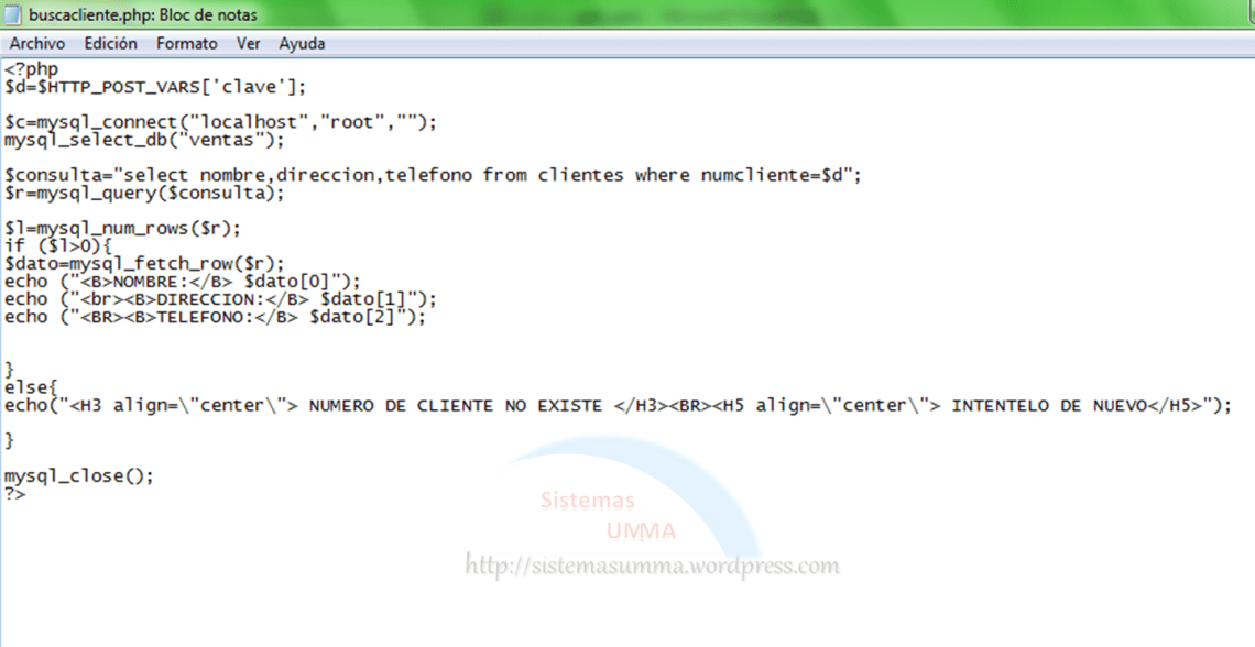 Ahora veamos como es el código del php al que le enviamos la clave y produce los resultados que vimos en la pagina anterior