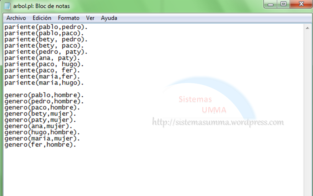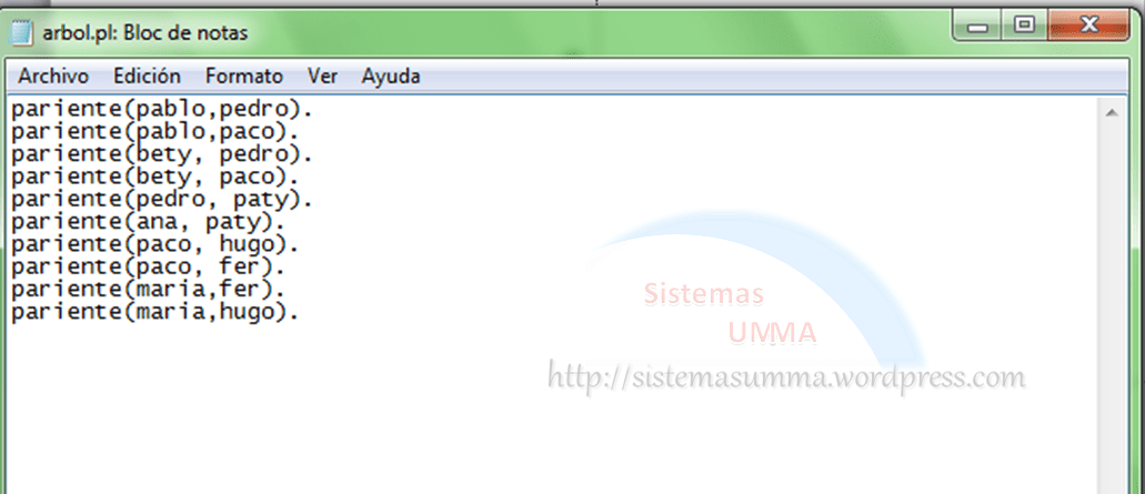 Lo primero sera comenzar a declarar los hechos, así que usaremos una función a la que llamaremos «pariente» para indicar quienes tienen una relación con quien, estos serán nuestros primeros hechos.