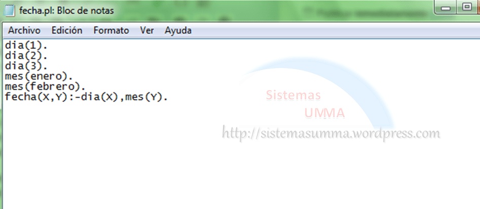 Observemos que en el código anterior se definen hechos llamados día en los que se declara que los números 1,2,3 corresponden a números de días, para una ejemplo mas completo habría que definir los 31 días.