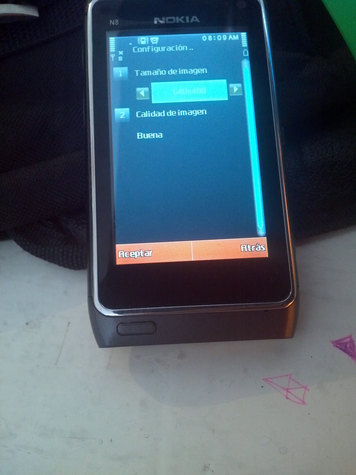 Al probar la cámara ciertamente la imagen distaba mucho de lo que es realmente la cámara de un N8, así que revise la configuración y me extraño que la resolución solo daba 640 x 480, revisando aun más el equipo siguieron apareciendo mas detalles, la extraña calidad de la imagen en pantalla, la falta de la opción del transmisor FM, así como de las opciones de estatus del teléfono.