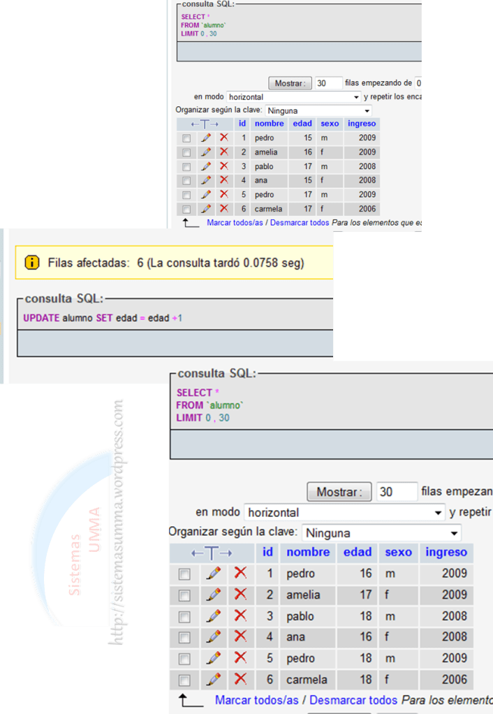 Como podemos ver hemos modificado los datos de todo los registros basados en la ejecución de un operación.