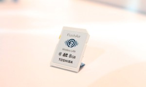 Lo que tenemos en la imagen es una tarjeta creada por toshiba y denominada flashAir, se trata de una tarjeta SD de 8Gb de capacidad y que incorpora una tarjeta Wi-Fi 802.11 b/g/n que al conectarla a una cámara digital crea su propia red WLAN en modalidad hotspot y que incorpora ademas un servidor web a traves, así que lo único que haremos sera conectar nuestra laptop a la red inalambrica creada por la tarjeta y automáticamente podremos acceder a las imágenes y los videos almacenados en ella.