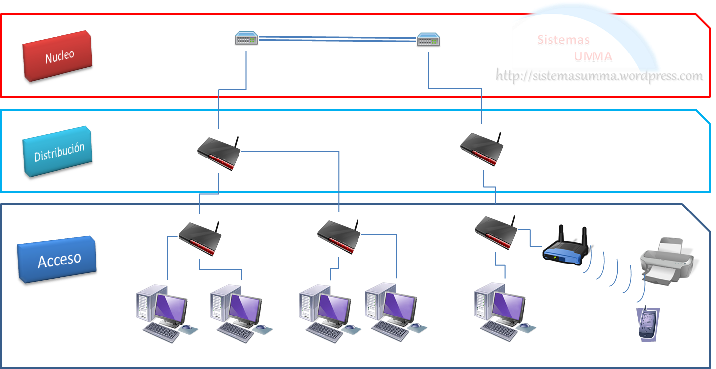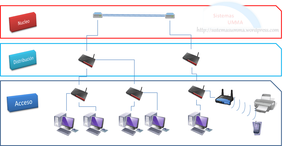 Una red jerárquica divide la red en niveles o capas con funciones especificas que permiten dividir la red en secciones de fácil crecimiento y mantenimiento, de acuerdo a los estándares de Cisco, una red jerárquica se divide en las siguientes capas.
