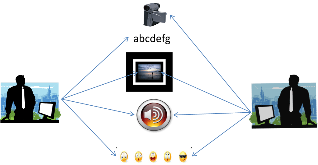 Como podemos ver en la imagen, hoy poseemos una comunicación multimedia, no solo nos comunicamos a través de la expresión oral y la palabra escrita, hemos inventado formas de comunicación diversas, como el abreviar cualquier palabra con unas cuantas letras en un mensaje de texto, el comunicar ideas y sentimientos en 128 caracteres o menos ( twitter), en los sistemas de mensajería instantánea aprendimos a comunicar nuestras ideas con textos y a darles sentimientos con los emoticones y los gestos, así tambien nos expresamos dedicando canciones, videos o imágenes a las personas que queremos en las redes sociales.