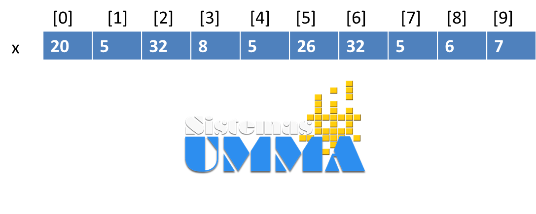 Al trabajar cada noche arreglos hacemos referencia a cada posición del arreglo a través de su número de índice, el cual comienza a partir del cero, de tal forma que para almacenar el número 10 en la posición 6 de un arreglo escribiriamos: