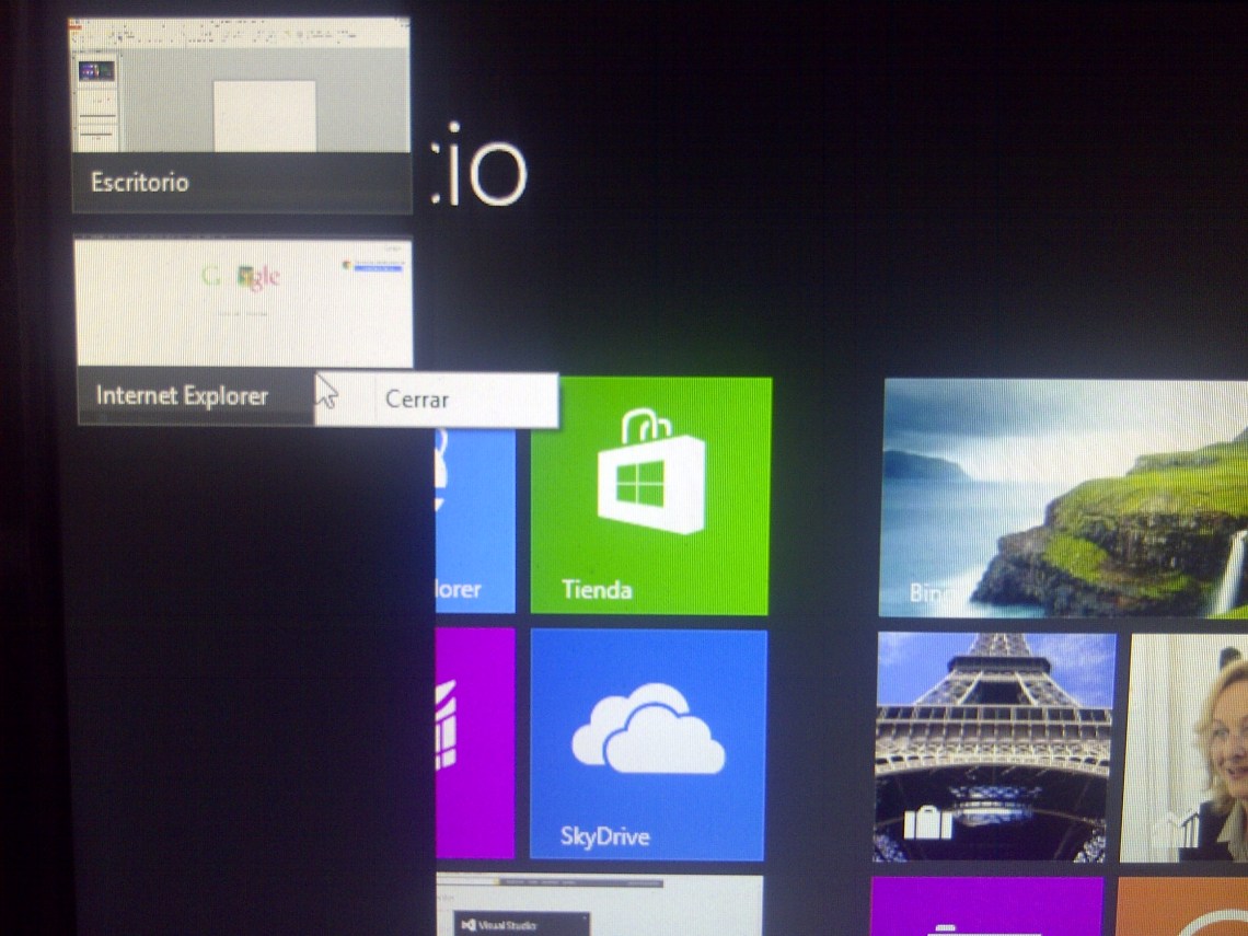 - ratón: nos colocamos en la esquina inferior izquierda de la pantalla y aparecerá un mosaico que nos permitirá alternar entre la pantalla de inicio y el escritorio.