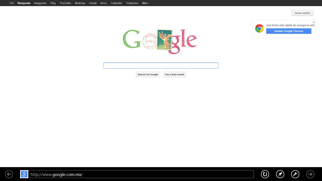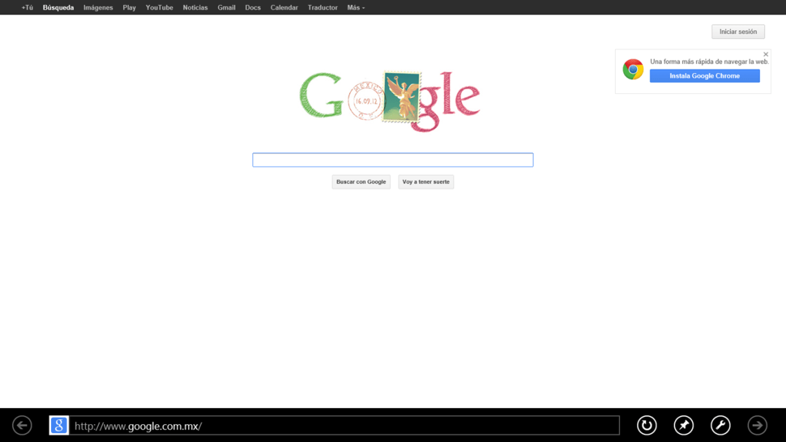 Algunos programas de Windows 8 funcionan en la interfaz Modern, otros funcionan en el escritorio y algunos como el caso de Internet Explorer, el visor de imágenes y el media player poseen dos versiones de ellos, veamos el caso de internet explorer, la siguiente imagen es con la interfaz Modern