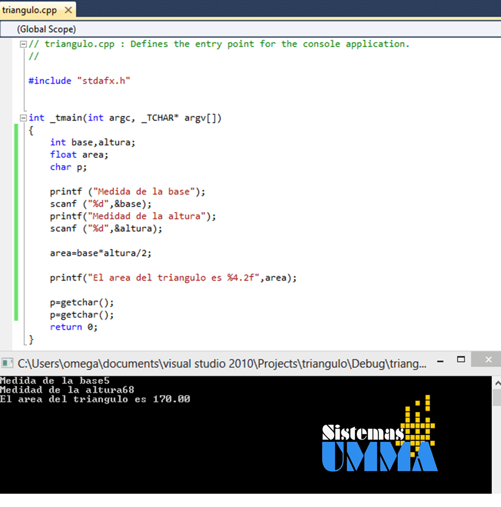 Como podemos observar el programa anterior calcula el área de un triangulo, y las instrucciones se ejecutan de forma lineal en secuencia sin dejar ninguna de ellas sin ejecutar y solo ejecutándolas una sola vez.