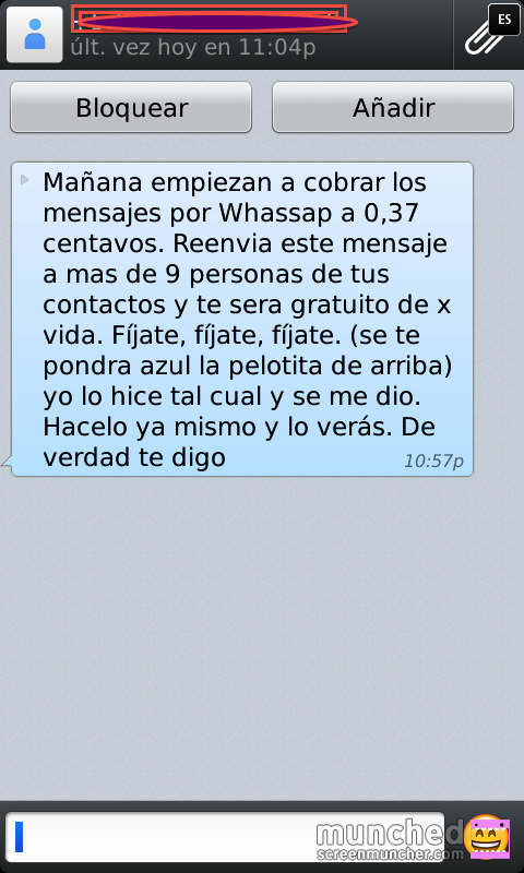 Desde hace unos días había escuchado comentarios sobre personas que recibían las tipicas cadenas de «reenvía este mensaje a 20 personas y algo hermoso pasara», si, imagino que lo hermoso que pasa es que hay alguien riendose de ti por seguirle el juego a esta tontería, pero , bueno no cada quien con sus creencias.