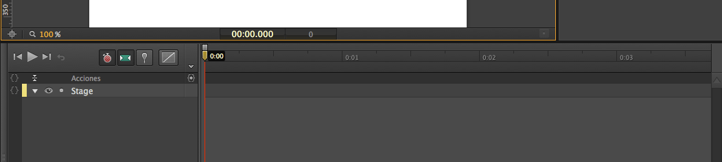 De tal forma que solo basta dibujar o colocar el elemento deseado en nuestro escenario (stage), para producir las animaciones tenemos debajo de nuestro panel principal la linea de tiempo (timeline), en donde podemos indicar la duración de las animaciones.