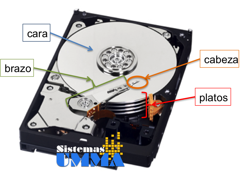 Para poder guardar la información, los discos duros organizan su estructura en los siguientes componentes: