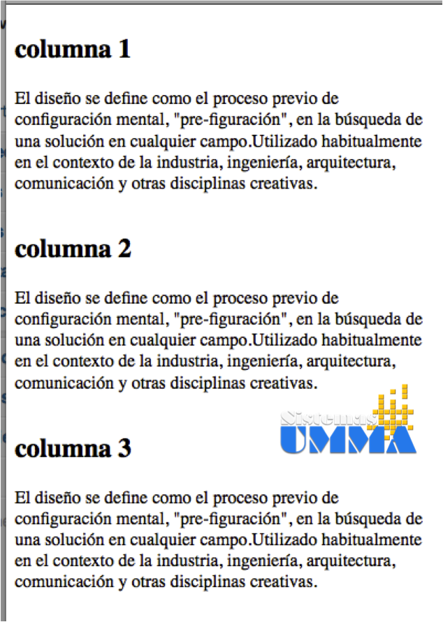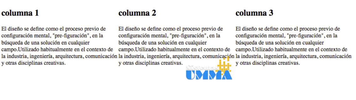 Continuando con el post anterior, en esta ocasión comenzaremos con un diseño de 3 columnas de texto para mostrar los conceptos básicos que mencionamos con anterioridad.
