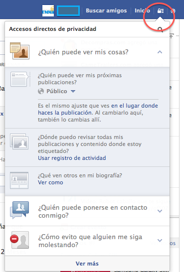 El primer paso, sera entrar a tu cuenta de Facebook y hacer clic en el icono con forma de candado que hay en la esquina superior izquierda, tal y como vemos en la imagen superior.