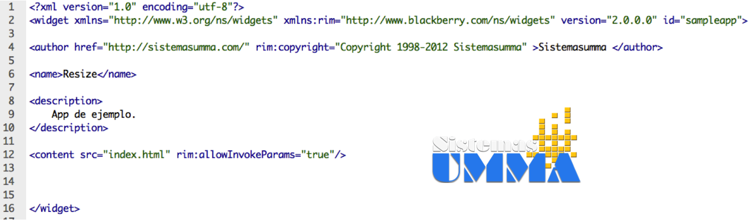 El archivo config.xml, contiene la descripción de nuestra app y la lista de permisos que necesitara nuestra app, para poder acceder a servicios web, al hardware y la API de Blackberry.