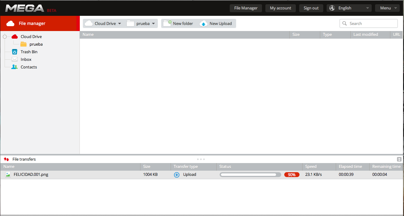 La subida del archivo que usamos de prueba tardo mucho tiempo en comenzar, pero una vez que lo hizo debemos de decir que fue una subida rápida, aun teniendo en cuenta que lo probamos con archivo pequeño.