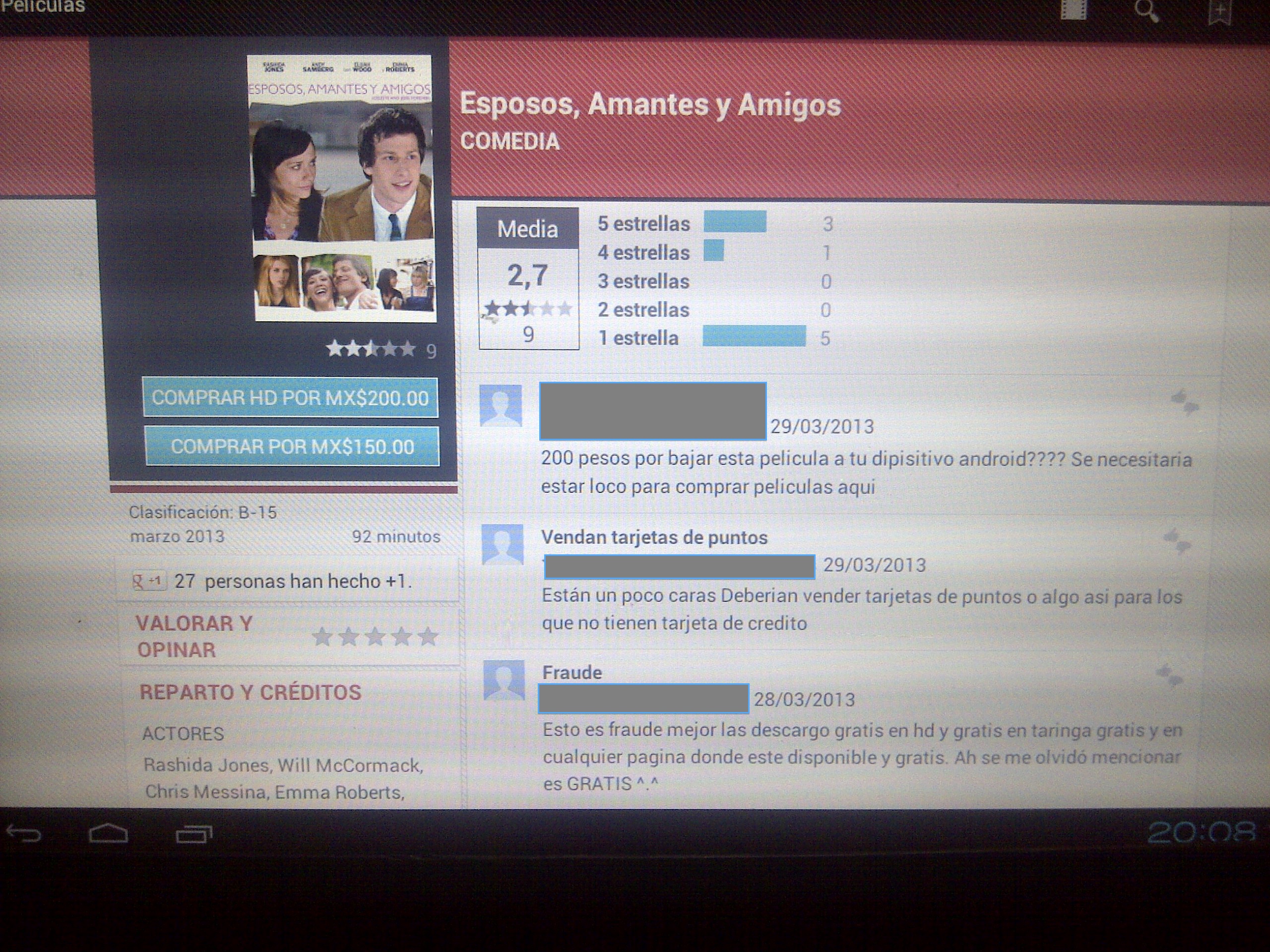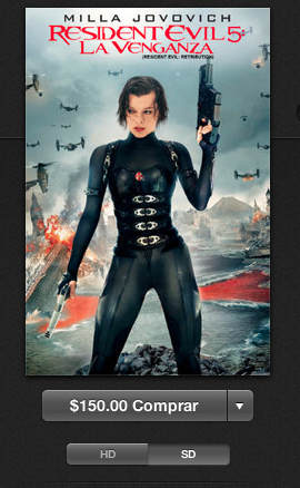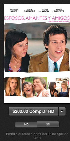 El precio de las películas gira entre los $150.00 y $200.00, algunas en HD, pero como vemos, el usuario Android no esta acostumbrado a pagar y lo comprobamos porque al buscar esta misma película en iTunes encontramos que tiene el mismo precio