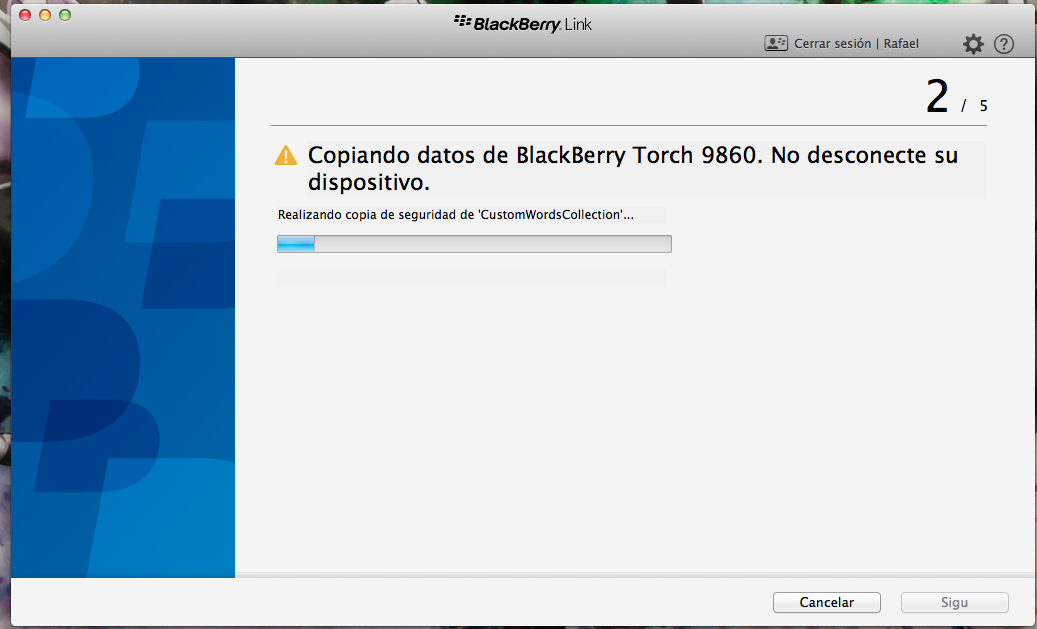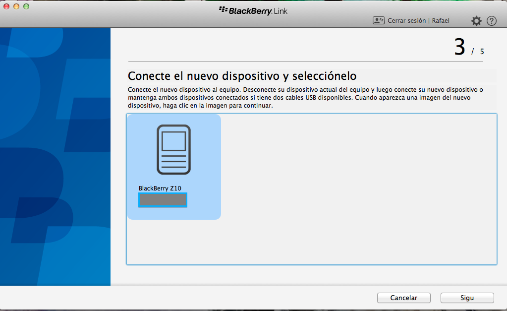 Una vez que termine de hacerse el respaldo nos pedirá que conectemos el equipo con Blackberry 10 y lo seleccionemos una vez que sea detectado.