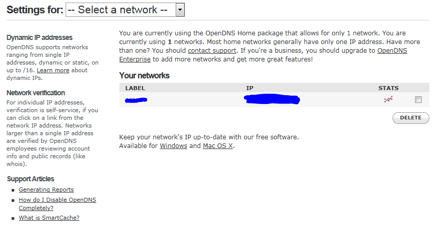 Para usarlo, solo debemos crear nuestra cuenta, configurar nuestra forma de pago y dar de alta nuestra red, pero como nuestra IP es dinamica, solo tenemos que instalar en algun equipo de nuestra red un programa que mantendra a OpenDNS actualizado con nuestra IP.