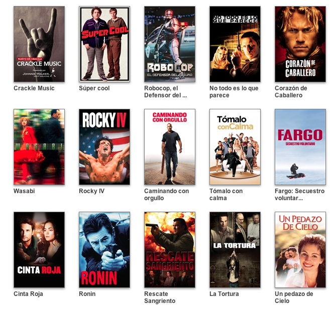 El catalogo de Crackle esta constituido por películas muy buenas, eso si, no son las mas nuevas que existen pero no hay desperdicio en el catalogo y hay para todos los gustos, ademas de series de televisión y música, lo cual constituye un paquete muy completo.