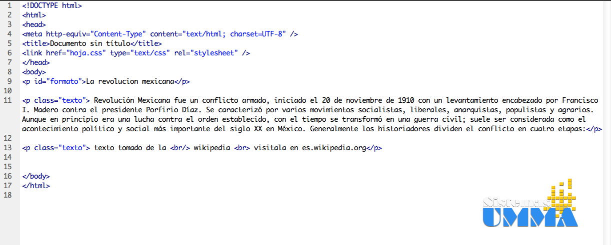 Observe que en el caso del atributo class, la clase «texto» la hemos colocado a dos etiquetas p, con lo que ambos párrafos tendrán el mismo formato.