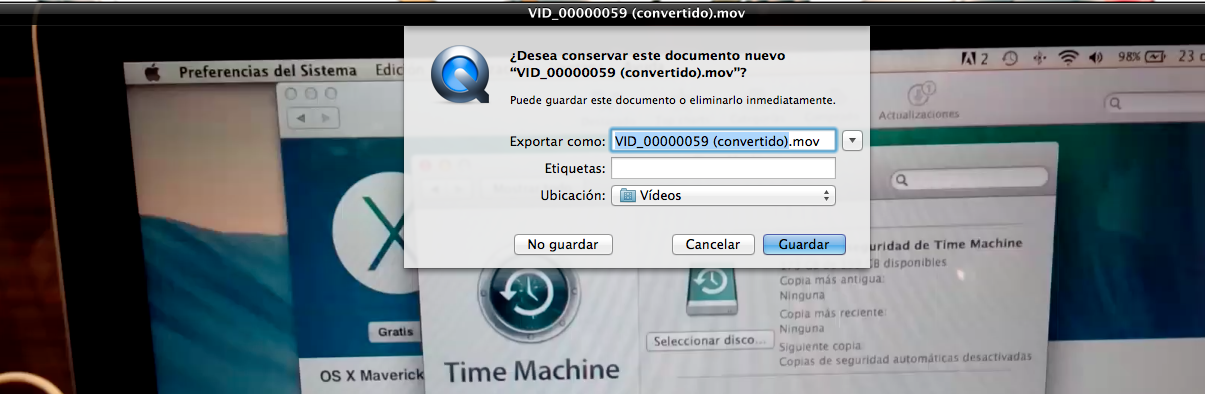 Una vez que termine, cerraremos QuickTime y nos preguntara por el nombre del archivo convertido y donde lo guardara.