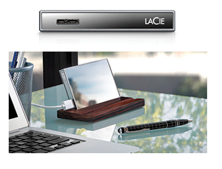 Como sabemos, LaCie es la marca premium de Seagate, la cual ha presentado este disco duro portatil de 1 Terabyte de capacidad, que ademas es una hermosa pieza de decoración para el escritorio, ya que posee una cubierta de cristal tipo espejo, que lo hace pasar desapercibido y ademas posee una fina base o stand donde colocarlo, elaborada en ébano, que la deja en una inclinación muy peculiar.