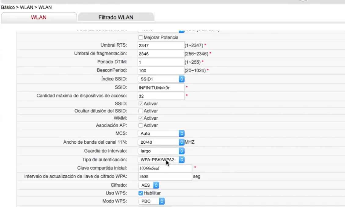 La opción que nos interesa es el tipo de autenticación, en donde deberemos cambiar a WPA o WPA2, ya que por defecto este modem emplea una encriptación  combinada de WPA + WPA2, por lo que algunos equipos no la pueden reconocer, por lo que no logran conectarse