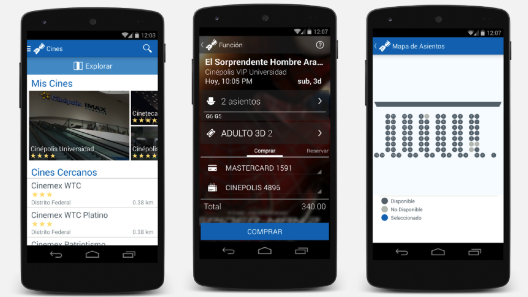 Así también y esto es algo que les puede salvar la vida, podemos comprar los boletos directamente desde la aplicación, soporta los cines que tienen butacas numeradas y los que no, así que no hay problema, y digo que les salvará la vida porque no vaya a ser que les digan quiero ir a la función de las 7pm y ya sean las 6pm, así compras desde el teléfono o tablet y listo. Disponible para Android y iPhone.