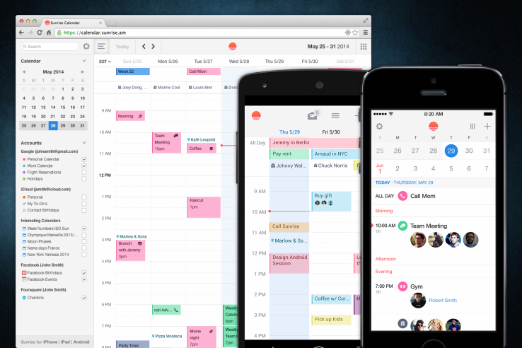 Si solemos organizarnos para salir con nuestros amigos mediante Facebook, la aplicación de calendario Sunrise nos vendrá muy bien, ya que le podemos conectar nuestra cuenta de Facebook e inmediatamente nos importara al calendario todos nuestros eventos de esta red social, y además nos mostrará el pronostico del clima para esos días, por tanto nos ayudará a definir si la reunión es al aire libre o en algún cafe o antro para los que no tienen frío XD.