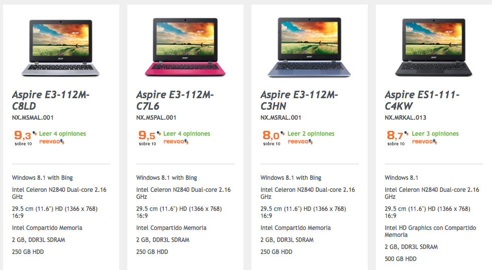 En la actualidad son muchos los modelos de equipos que emplean este sistema, entre los que podemos mencionar la serie E 11 de Acer