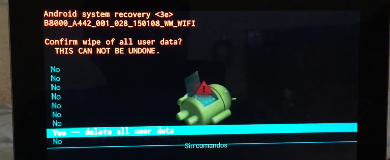 2. señores buena noche, necesito que me den alguna idea, mi tablet es lenovo b8000 apliqué el procedimiento de hard reset, pero ahora la tablet no quiere recuperar su programación de fabrica, se queda en el android haciendo como que borra y no restaura nada, de inemdiato se queda en el android como acostado con un signo de exclamación. que puedo hacer. gracias