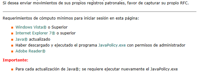 Anteriormente, había que mantener una versión vieja de Java y no carga ninguna actualización para no perder el acceso al IDSE, pero eso ha cambiado, ahora cada que se recibe el aviso de actualización, hay que actualizar Java, porque si no los sistemas del SAT no funcionan, así que para mantener el acceso al IDSE hay que ejecutar el famoso javapolice que proporciona el mismo IDSE en su pagina.