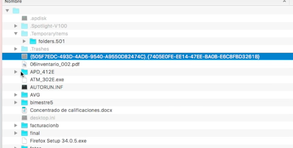 Y dentro de ellas, buscaremos archivos que tengan la misma forma de nombre que el que vimos en la memoria USB, no será el mismo nombre , pero será fácil de reconocer.