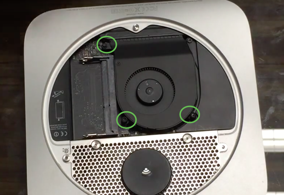 Ahora para quitar el ventilador, quitamos los tres tornillos marcados y el conector sale jalando suave hacia arriba.