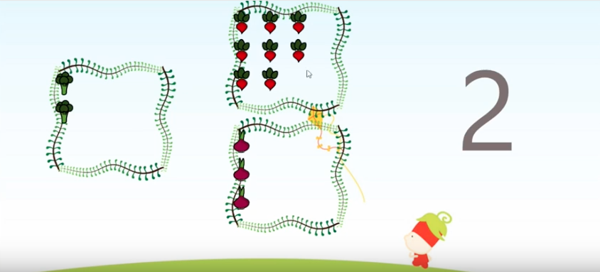 Aunque parece sencilla, es una juego muy útil, pues al buscar en que grupo hay el numero de vegetales que se indica, se promueve el reconocimiento de forma, el conteo y el agrupamiento de objetos.