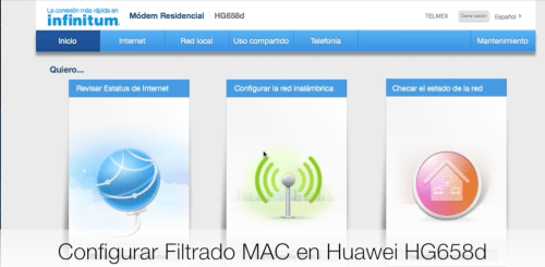 El filtrado MAC consiste en declarar una lista de equipos que se pueden o no conectar a nuestra red inalámbrica a través de su dirección física, con lo cual podemos alejar a posibles intrusos de nuestra red, en esta ocasión veremos cómo se configura en uno de los modems más recientes de Telmex, el Huawei HG658d.